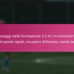 Quali sono i principali vantaggi della formazione 3-2-4-1 durante le transizioni? In che modo la formazione 3-2-4-1 consente rapide ripartenze? Quali strategie migliorano il recupero difensivo nella formazione 3-2-4-1? In…