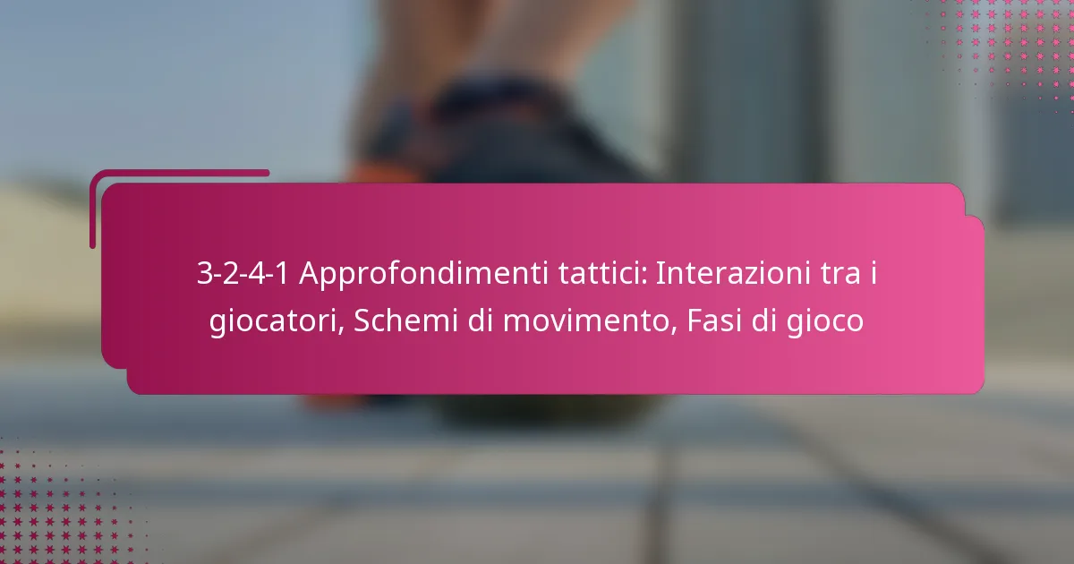 Nella formazione 3-2-4-1, le interazioni tra i giocatori sono cruciali per mantenere struttura e fluidità durante una partita. Il movimento e la comunicazione di ciascun giocatore influenzano significativamente le prestazioni complessive della squadra, garantendo transizioni efficaci tra difesa e attacco.
